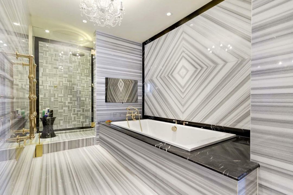 Equator Marble creates a sense of spaciousness in spaces with its perfect parallel dark gray lines. This feature is especially advantageous in small areas, providing a broader appearance. The white and gray tones of Equator Marble are compatible with various decoration styles, making it suitable for both modern and classic designs.